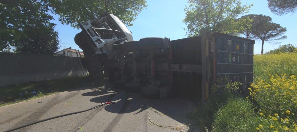Castrocielo – Camion si ribalta sulla Leuciana, traffico in tilt e autista ferito