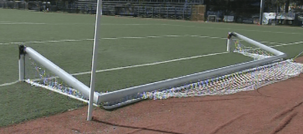 Hanno segato una delle due porte all’interno del rettangolo di gioco e poi, con delle bombolette spray, hanno lasciato delle scritte offensive sui muri esterni degli spogliatoi.