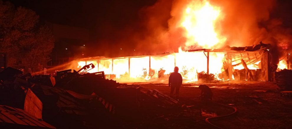 Fiamme altissime visibili dalla vicina autostrada. Un rogo si è propagato in serata all’intento di un deposito di legname nella zona industriale di Anagni. A fuoco diverse pedane di legno. Sul posto diverse squadre dei vigili del Fuoco e i carabinieri della compagnia della città dei papi. L’intervento ancora in atto alle 23:30.