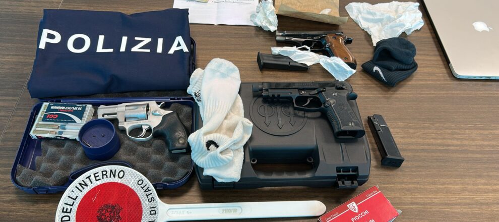 Durante una perquisizione nel suo domicilio, gli agenti hanno rinvenuto l’arma nascosta in un calzino all’interno di un vaso, insieme a due caricatori e 40 cartucce calibro 380.