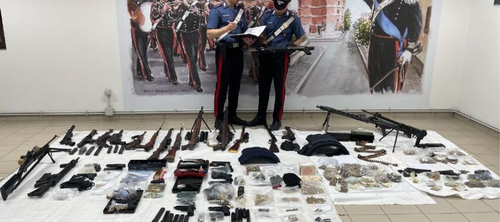 Sette fucili mitragliatori, sette fucili, anche a pompa, sei carabine, 23 pistole, semiautomatiche e revolver, tre bombe a mano, 2500 cartucce, silenziatori, caricatori, giubbotti antiproiettile e due uniformi delle forze dell’ordine. Oltre a ciò sono stati trovati quasi diecimila euro, quasi sicuramente falsi ed oltre tre etti di hashish. Il tutto è stato sequestrato e le tre bombe sono state fatte brillare dagli artificieri.