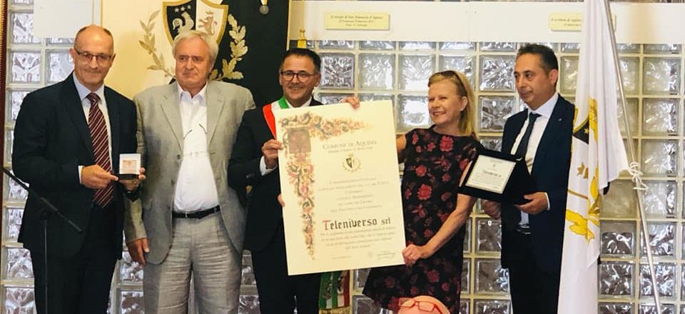 AQUINO – 21 LUG – Un nuovo riconoscimento per Teleuniverso: l’emittente, nella persona del proprio presidente, Biancamaria Colella, ha ricevuto dal consiglio comunale di Aquino l’attestato di Civica Benemerenza “Per lo svolgimento di una quarantennale attività di impresa che ha dato lustro alla Città e che si è imposta quale veicolo di informazione e promozione socio culturale dell’intero territorio”.