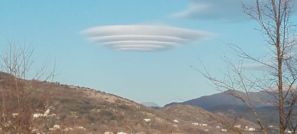 ARCE – 14 FEB – Un raro fenomeno meteorologico si è verificato nel pomeriggio sui cieli di Arce, dove si è formato un altucumulus lenticularis: una nube a forma di lente, caratterizzata da una serie di onde.