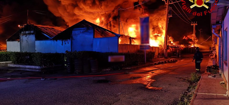 Uno spaventoso incendio è scoppiato la notte scorsa ad Ardea. I Vigili del Fuoco sono al lavoro dalla mezzanotte per spegnere le fiamme. L’area rimasta coinvolta è circoscritta, al suo interno sono presenti 8 capannoni, 6 (usati come depositi di pneumatici per auto e mezzi industriali) sono stati completamente distrutti dalle fiamme. La sala operativa del comando provinciale di Roma ha inviato 8 squadre di vigili del fuoco con il supporto di una autobotte kilolitrica (capiente 18.000 litri). Le operazioni di spegnimento sono andate avanti per tutta la notte, il personale dei Vigili del Fuoco prosegue le operazioni di spegnimento, bonifica e messa in sicurezza dell’area coinvolta. Presenti sul posto carabinieri e personale del 118 per le loro competenze.