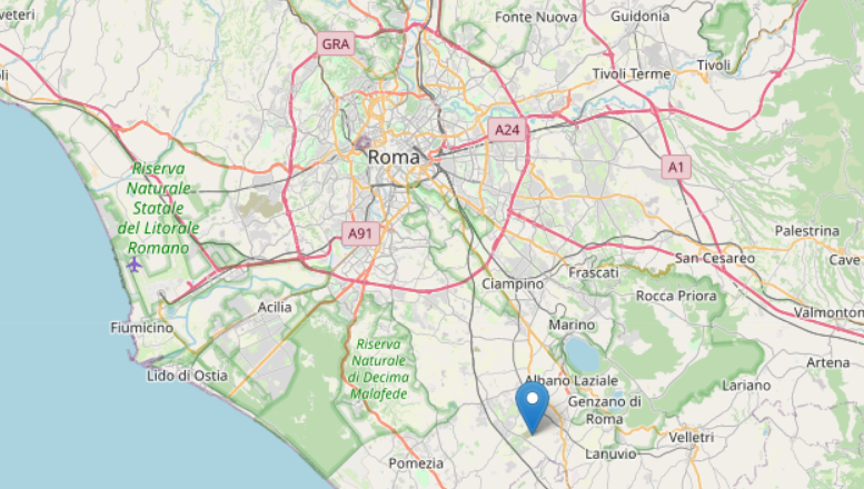 Una scossa di terremoto di magnitudo 2.6 è stato registrato nella zona di Ariccia, in provincia di Roma, alle