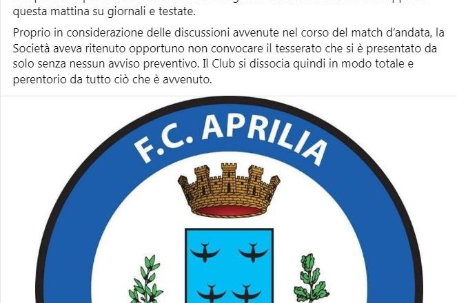 L’Aprilia calcio si dissocia da quanto è successo in occasione della gara dell’U19 Nazionale in casa della Vis Artena dove un tesserato delle rondinelle, non convocato dalla società per via di alcuni screzi avvenuti nella partita d’andata, si è presentato sugli spalti armato di pistola, un modello giocattolo, in metallo ma privo del tappo rosso, molto simile a quelle in dotazione alle forze dell’ordine.