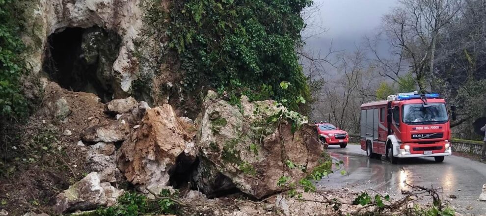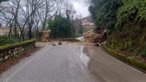 Ad Atina è stata chiusa al traffico via Capodichino dopo la caduta di un grosso masso che ha invaso la carreggiata.