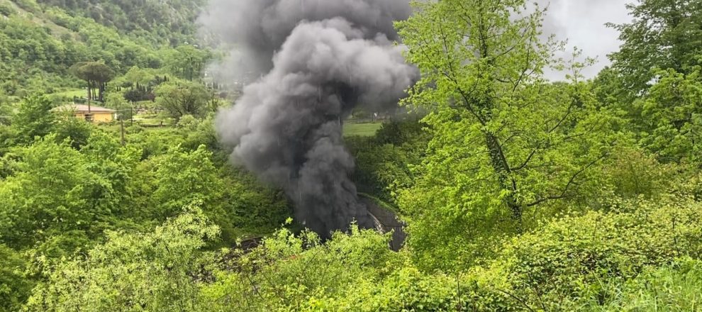 Camion in fiamme nella galleria di Atina, lungo la superstrada Cassino-Sora.