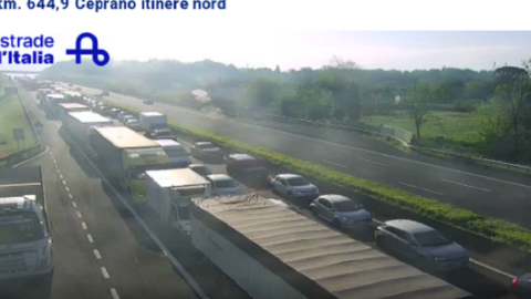 Traffico in tilt in A1, nel tratto compreso tra Cassino e Frosinone verso Roma, per un incidente avvenuto al km