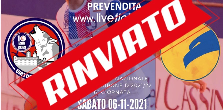La SSD a RL Virtus TSB 2012 Cassino rende noto che, a seguito della comunicazione ufficiale avuta ieri sera dal Settore Agonistico della Federazione Italiana Pallacanestro, la gara in programma oggi al PalaVirtus di Cassino alle ore 17:00 contro la Fidelia Torrenova, è rinviata a data da destinarsi. La motivazione di tale decisione, è da attribuirsi alla quarantena fiduciaria obbligatoria, presso i rispettivi domicili, imposta dalla ASL territorialmente competente al gruppo squadra del club siciliano, a causa di un caso di Covid rilevato nel team alla vigilia della gara.