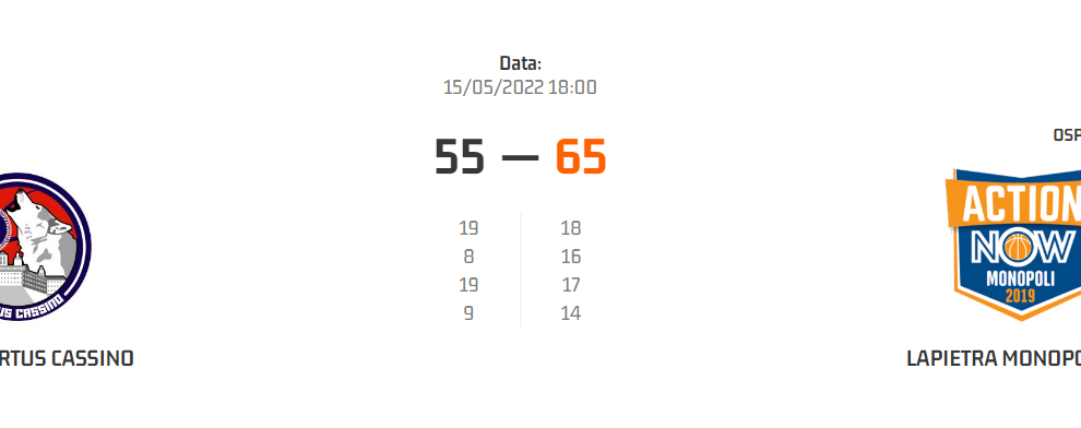 Si arrende all’ultimo quarto la Bpc Virtus Cassino nella sfida playout con Monopoli finita 55-65 per i pugliesi.