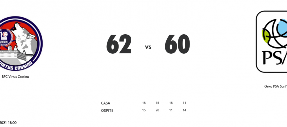 Alla terza giornata arrivata la tanto attesa vittoria per la Virtus Cassino che al palazzetto dello sport di via De Feo batte la corazzata Sant’Antimo per 62-60 dopo un match sempre sul filo come testimoniano i parziali: