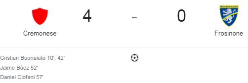 25esima giornata amara per il Frosinone che prende 4 reti dalla Cremonese.