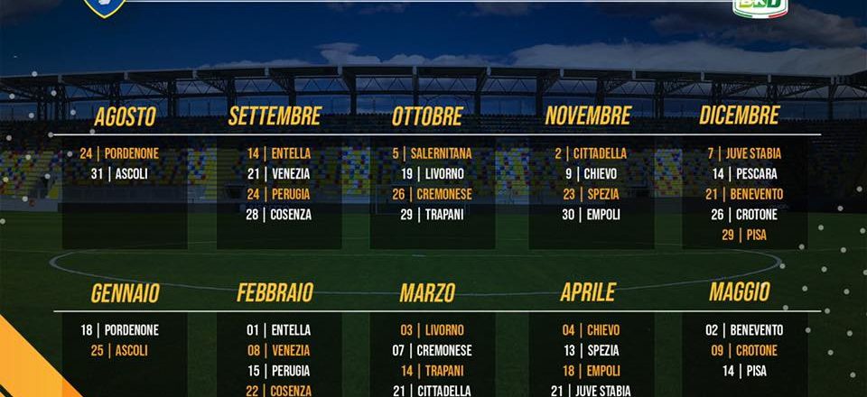 Il cammino poi porterà a Chiavari contro l’Entella e alla quarta la gara in casa contro il Venezia. Il primo match di un certo spessore arriverà alla quinta, al Curi, contro il Perugia ultima squadra allenata da Nesta. Poi dalla sesta alla decima nessuna big, con la Cremonese alla nona in trasferta come gara più ostica. Alla dodicesima la prima retrocessa dalla A, allo “Stirpe” arriverà il Chievo. Dalla quattordicesima alla diciannovesima gli incontri più duri: Empoli in casa, Juve Stabia fuori, Pescara in casa, Benevento fuori, Crotone dentro e Pisa fuori. Il campionato giallazzurro terminerà contro i toscani in casa.