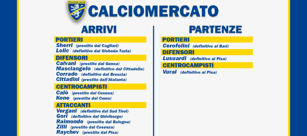 In conclusione, questo il borsino finale delle operazioni, partendo dagli acquisti. Presi due portieri: Sherri e Lolic. In difesa sono arrivati: Calvani in prestito dal Genoa, Masciangelo e Corrado definitivi e Cittadini in prestito dall’Atalanta. In mediana: Calò in prestito dal Cesena e Kone dal Como. In avanti: Vergani e Gori a titolo definitivo, Raimondo in prestito dal Bologna e Zilli dal Cosenza, l’esterno offensivo Raychev dal Pisa. Le cessioni, di fatto, sono state solo tre: Cerofolini al Bari, Lusuardi e Vural al Pisa. A conti fatti, tra cartellini ed ingaggi, anche la bilancia economica dovrebbe volgere al positivo.