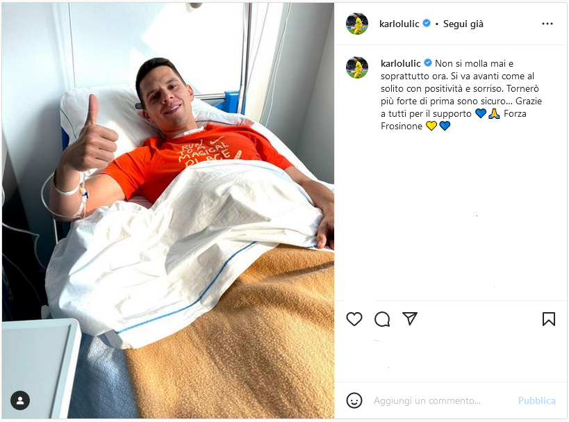L’operazione è stata eseguita con successo dal Prof. Giuliano Cerulli, presso la clinica Villa Fiorita di Perugia, e in presenza del Dott. Andrea D’Alessandro responsabile sanitario del Frosinone Calcio. Lo stesso Lulic dopo l’operazione ha pubblicato un post sul suo profilo instagram dicendosi sicuro di tornare più forte di prima.