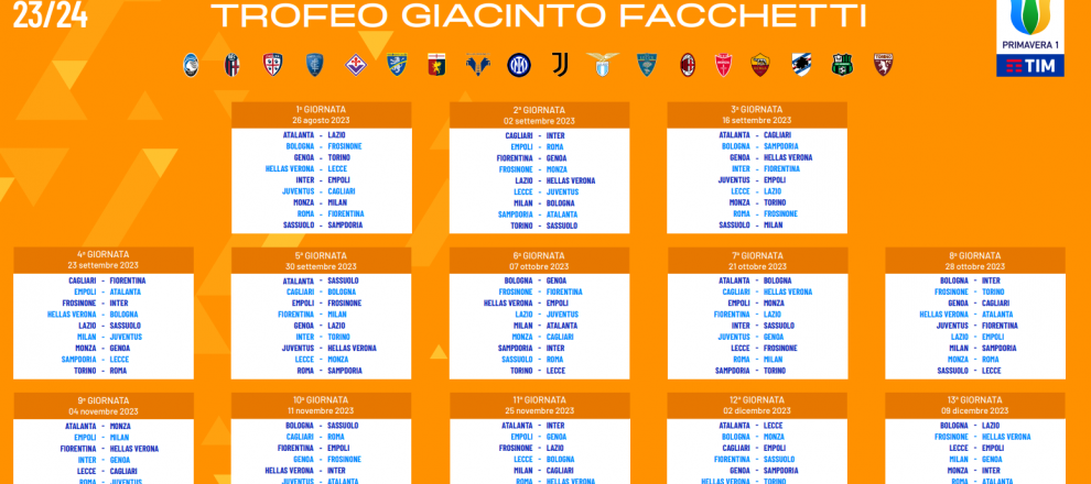 E’ stato diramato il calendario primavera per la stagione 23/24. Il Frosinone del neo mister Angelo Adamo Gregucci esordirà in trasferta a Bologna il 26 agosto. La prima in casa il 2 settembre con il Monza. Poi alla terza di campionato prevista il 16 settembre il derby regionale Roma-Frosinone. Il 25 novembre un altro big match: Frosinone-Lazio.