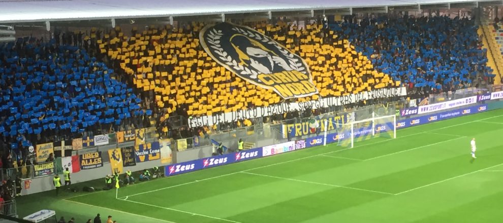 l’arbitro concede cinque minuti di recupero. Gli animi si surriscaldano. Negli ultimi istanti brividi in area giallazzurra. Ma c’è il lieto fine. Il Frosinone vince ancora e non si vuole più fermare