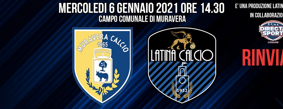 E’ arrivata poco fa dalla Lega Nazionale Dilettanti la nota con la quale è stata rinviata la gara Muravera Vs Latina Calcio 1932, in programma mercoledì 6 gennaio e valevole per la decima giornata del campionato di Serie D girone G.