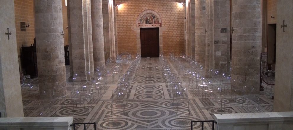 Nella cattedrale di Anagni è già tutto pronto: le sedute sono state distanziate, niente acquasantiere, igienizzanti a disposizione dei fedeli e tutto organizzato anche per contingentare gli ingressi e misurare la temperatura prima dell’accesso in chiesa.