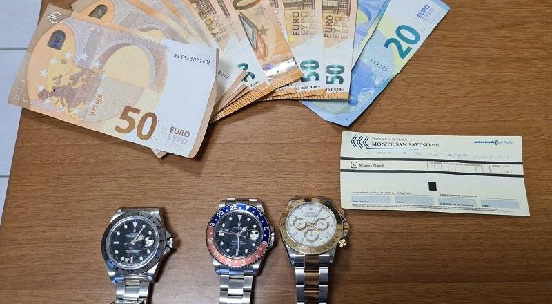 I fermati sono stati trovati in possesso di tre orologi Rolex, di una busta contenente diversi monili d’oro, oltre che di 540 euro in contanti.