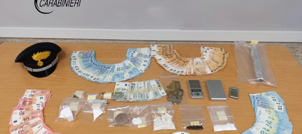 Nel corso di una perquisizione domiciliare, delegata dalla Procura della Repubblica di Cassino, i militari hanno rinvenuto – nascosti in vari punti dell’abitazione – diversi quantitativi di droga e materiale correlato, così riassumibili: