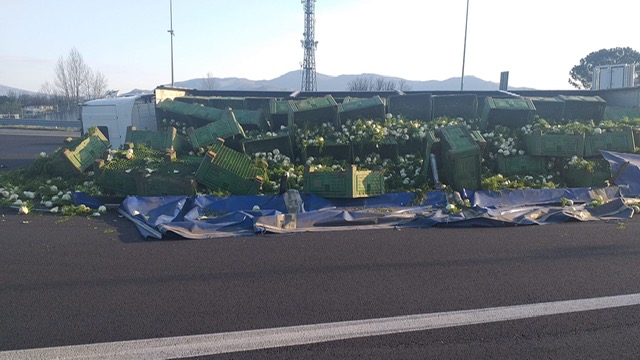 CASSINO – Un intero carico di finocchi andato perso dopo che il camion che li trasportava si è ribaltato in autostrada prima del casello di Cassino. Il conducente non è rimasto ferito ma possiamo vedere i tanti finocchi finiti sull’asfalto. E’ intervenuta la polizia stradale della sottosezione di Cassino per regolarizzare il traffico ed anche la Asl per gli ortaggi in questione.