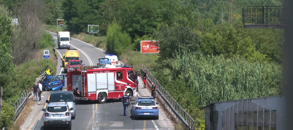 Una persona è deceduta nell’incidente stradale che si è registrato poco dopo le 13 sulla Cassino-Sora, nel tratto che attraversa la città martire, in località Folcara. Secondo le primissime informazioni si sarebbero scontrati un’auto ed un camion cisterna adibito al trasporto latte. L’autoarticolato ha finito la sua corsa fuori strada sfondando il parapetto del ponte. La vittima sarebbe il conducente dell’auto, mentre l’autista della cisterna non avrebbe riportato ferite gravi. Il tratto di strada è chiuso per i rilievi affidati alla Polizia Stradale. Sul posto anche Vigili del Fuoco e 118.