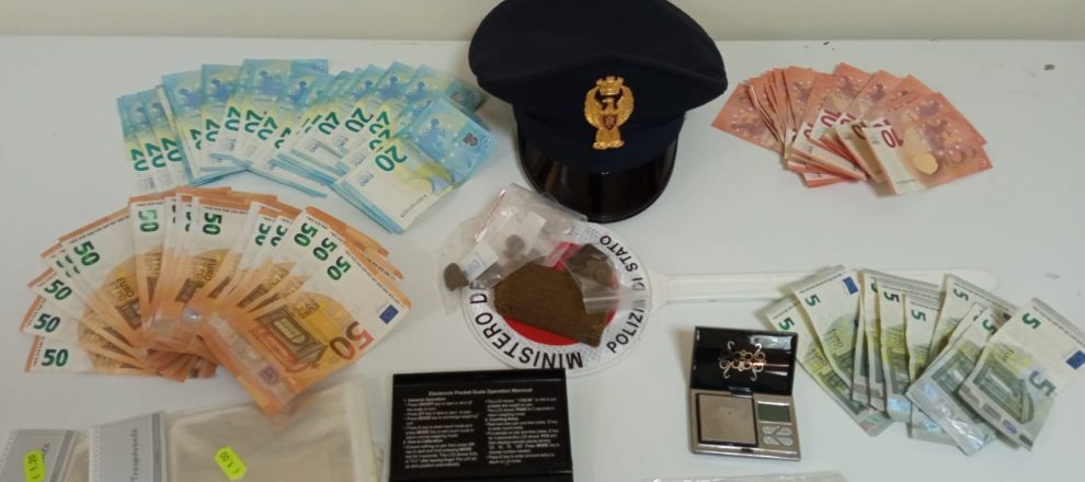 Nel frattempo lo spacciatore, seguito dai poliziotti in borghese, è stato fermato e sottoposto a perquisizione che ha permesso di rinvenire circa 30 grammi di hashish già suddivisi in dosi e la somma di oltre 2.000,00 euro in banconote di piccolo taglio, provento dell’attività illecita.