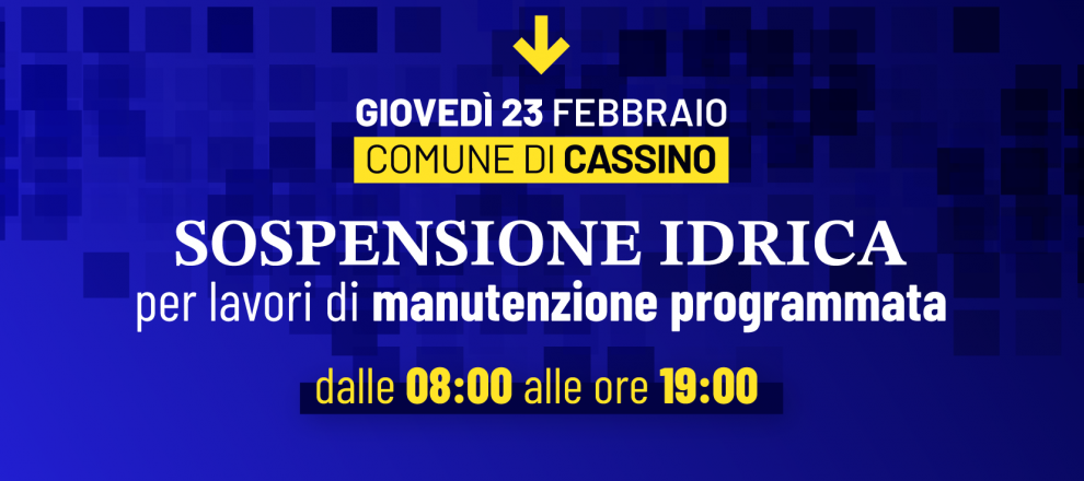 Problemi con luce e acqua giovedì 23 febbraio a Cassino: Acea Ato5 ha comunicato che per un importante intervento manutentivo sulla rete idrica in prossimità della rete elettrica, per prevenire situazioni di pericolo, il flusso sarà interrotto dalle ore 08:00 alle ore 19:00.