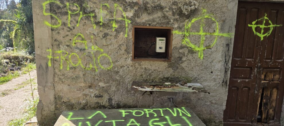 Agli Horti di Porta Paldi, oasi verde e simbolo di rinascita nel cuore di Cassino, l’alba restituisce un’immagine che contrasta violentemente con la natura del luogo. Scritte omofobe, inneggianti al Duce e persino inviti espliciti alla violenza contro gli omosessuali compaiono sui muri di porta paldi, antico ingresso alla citta di Cassino, ma anche pali dell’illuminazione e strutture dell’area. A firmarle, una sigla chiara e ben precisa appartenente ad ambienti dell’estrema destra e che omettiamo di riferire per evitare di dare all’odio ulteriore clamore.