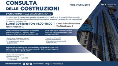 Frosinone – Lunedì Ance organizza la “Consulta delle Costruzioni”
