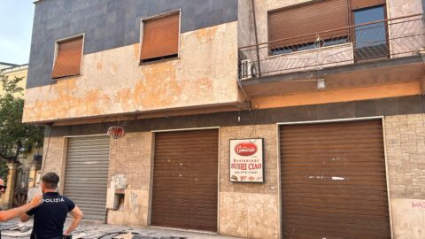 Cassino – Tragedia sfiorata in via Arigni: si stacca l’intonaco di una palazzina e finisce su strada a pochi metri dall’asilo