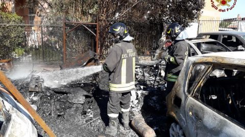Incendio in un autosalone a Marino, alle porte di Roma. Sul posto, in via Nettunense 167, intorno alle 3,