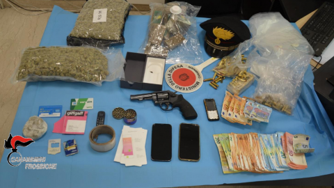 In casa aveva un revolver calibro 38, 100 cartucce e oltre due chili e mezzo di droga. Un 30enne di