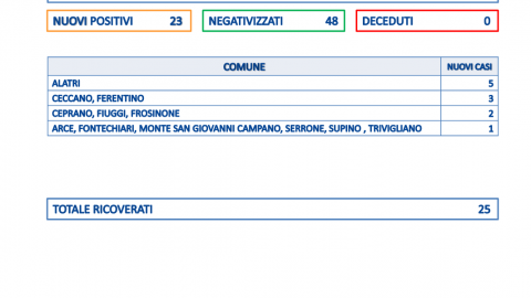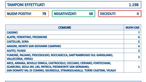 Pochi i tamponi eseguiti la domenica, pochi i contagi che vengono registrati il lunedì. In provincia di Frosinone sono 23