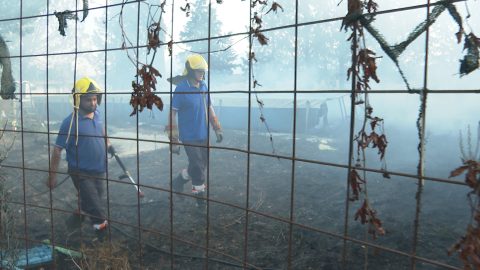 A fuoco la piscina comunale di Catsrocielo: nel pomeriggio un incendio di sterpaglie ha presto interessato la struttura che si