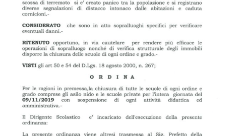 SORA – 08 NOV – Dopo le scosse di terremoto delle scorse ore continuano su tutto il territorio di Sora