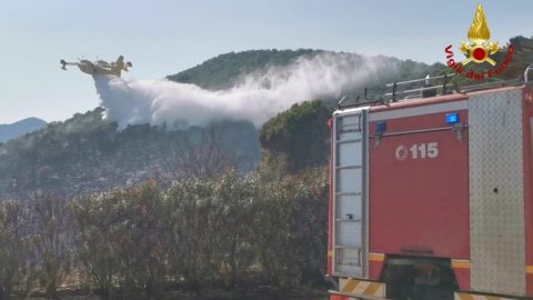 Terracina – Vasto incendio boschivo, in azione elicottero e Canadair
