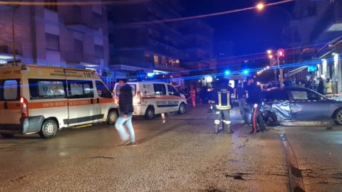 CASSINO – 03 FEB – Una violenta carambola, con un’auto che si è schiantata contro il palo del semaforo, creando