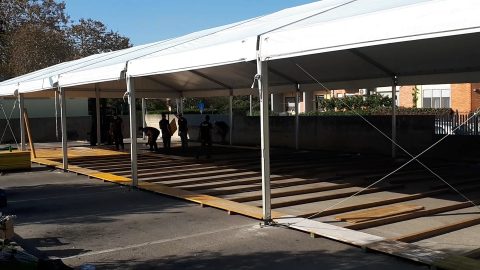 Un’enorme struttura mobile, un tendone, per cercare di risolvere il problema delle file delle ambulanze all’esterno del Santa Maria Goretti.
