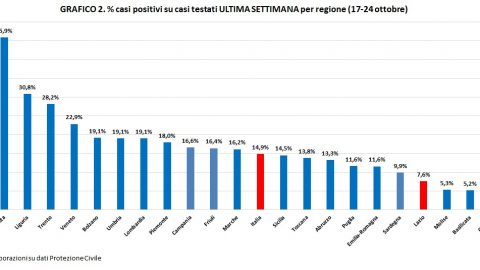 “Secondo i dati elaborati dalla Protezione Civile (settimana dal 17 al 24 ottobre), la Regione Lazio risulta essere una delle