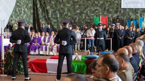 Grande dolore questa mattina all’aeroporto Comani di Latina, dove si è svolta la cerimonia funebre del Colonnello Simone Mettini e