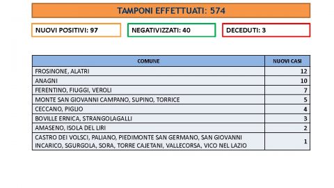 Nella giornata del 28 febbraio 2021 sono stati effettuati 574 tamponi: 97 nuovi postivi e 40 negativizzati. Sono stati registrati