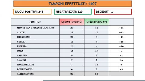 I numeri dei casi registrati in provincia di Frosinone restano alti. Nella giornata del 27 febbraio ci sono stati 220