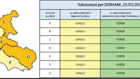 “Il Centro Funzionale Regionale rende noto che il Dipartimento della Protezione Civile ha emesso oggi l’avviso di condizioni meteorologiche avverse