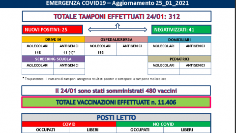 Sono 86 i nuovi positivi al Covid nelle ultime 24 ore su 775 tamponi effettuati. L’indice di positività continua a
