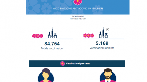 Sono quasi 85mila i vaccini covid somministrati fin’ora nel Lazio. Il contatore giornaliero delle vaccinazioni fa registrare un più 5169