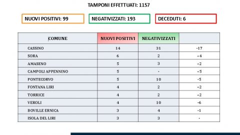Migliora la situazione in provincia di Frosinone, sul fronte dei nuovi contagi, ma è stata una giornata drammatica per il