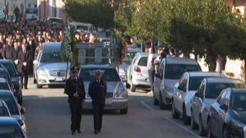 PIGNATARO I. – 08 GEN – Una marea di gente in rigoroso silenzio e a piedi dietro il carro funebre.